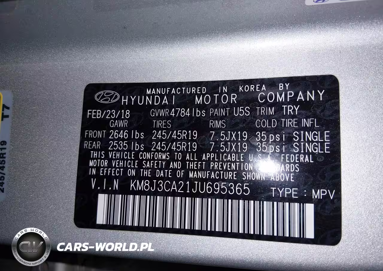 IAAI Nr: I-44373908 VIN: KM8J3CA21JU695365 Port: Los Angeles, CA