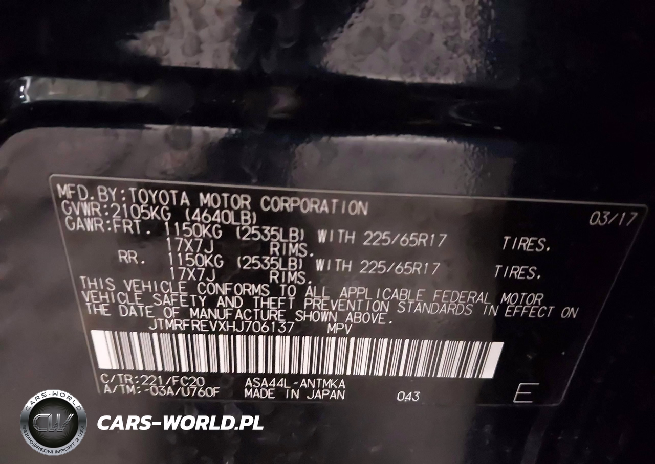 IAAI Nr: I-44374001 VIN: JTMRFREVXHJ706137 Port: Indianapolis, IN