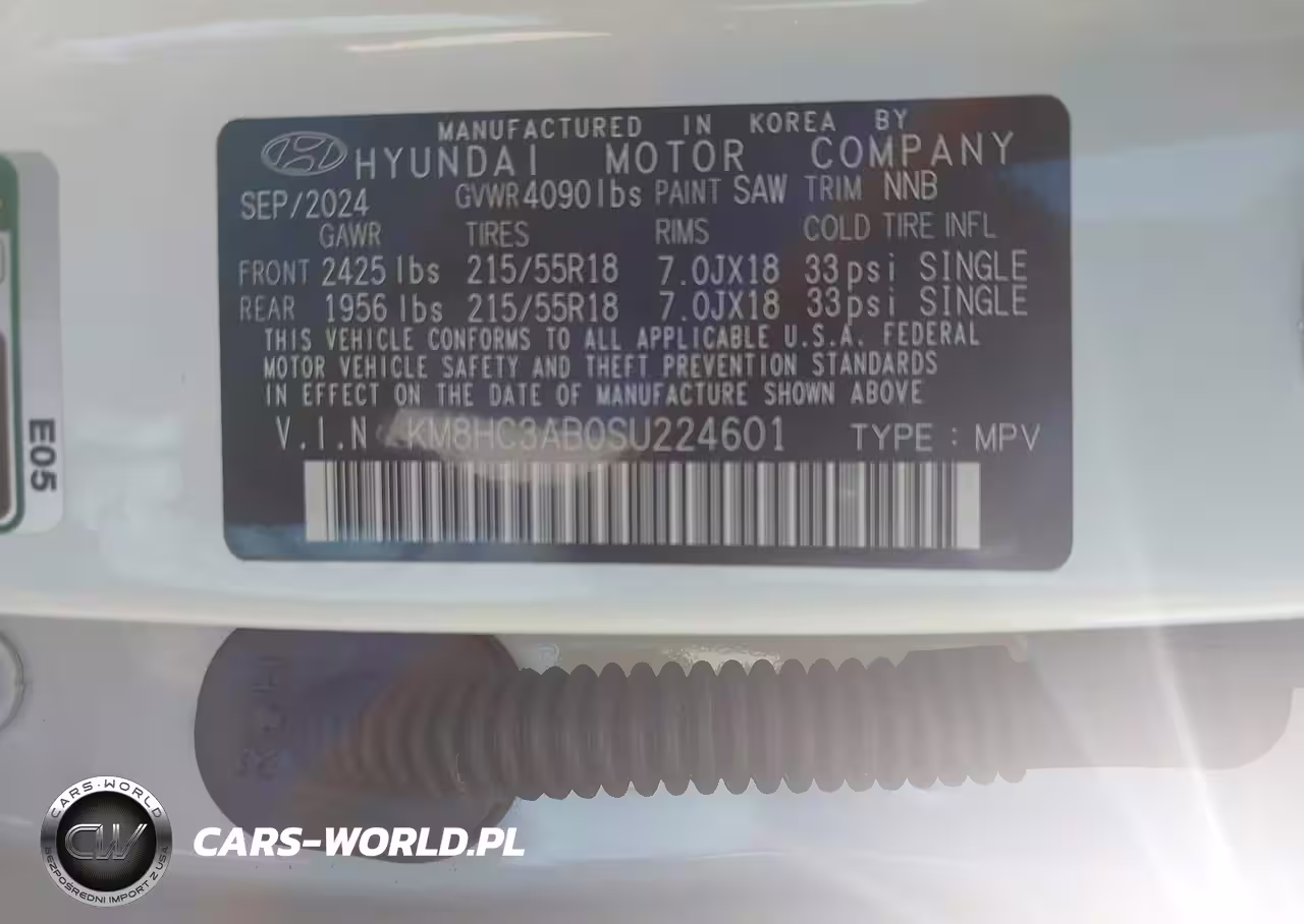 IAAI Nr: I-44375379 VIN: KM8HC3AB0SU224601 Port: Houston, TX