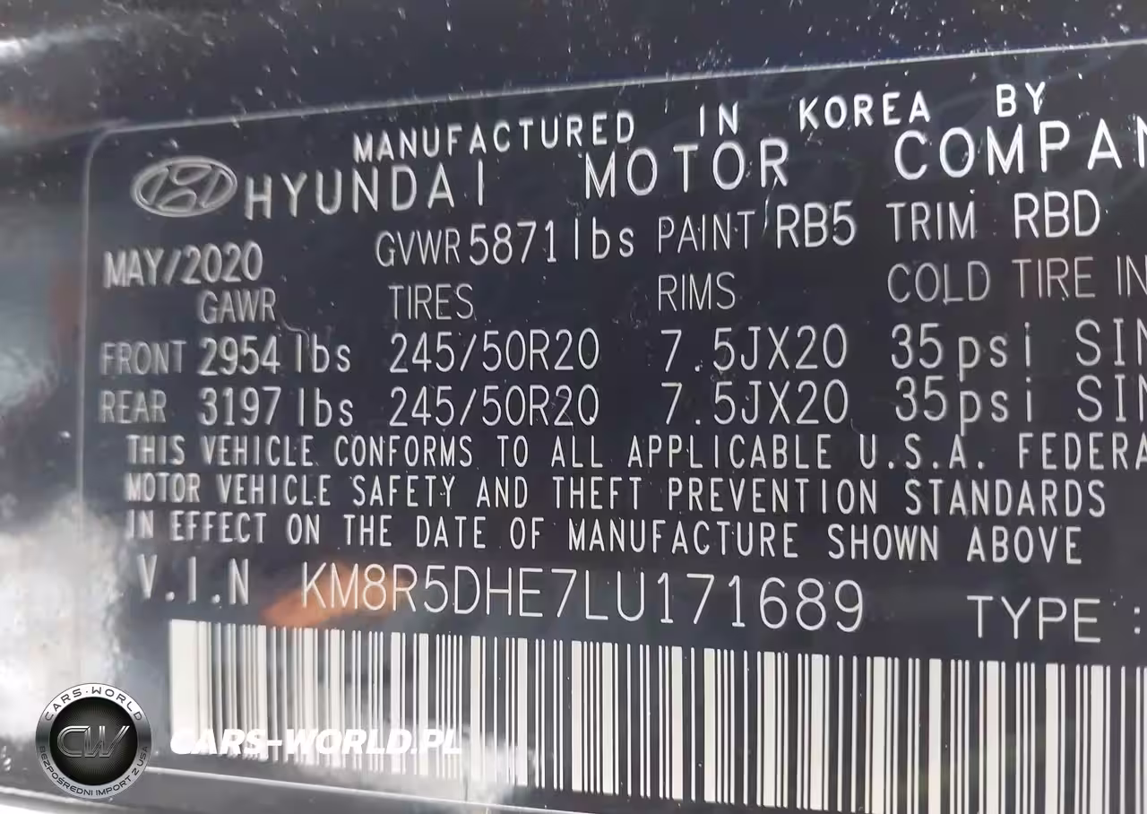 IAAI Nr: I-44376369 VIN: KM8R5DHE7LU171689 Port: Elizabeth, NJ