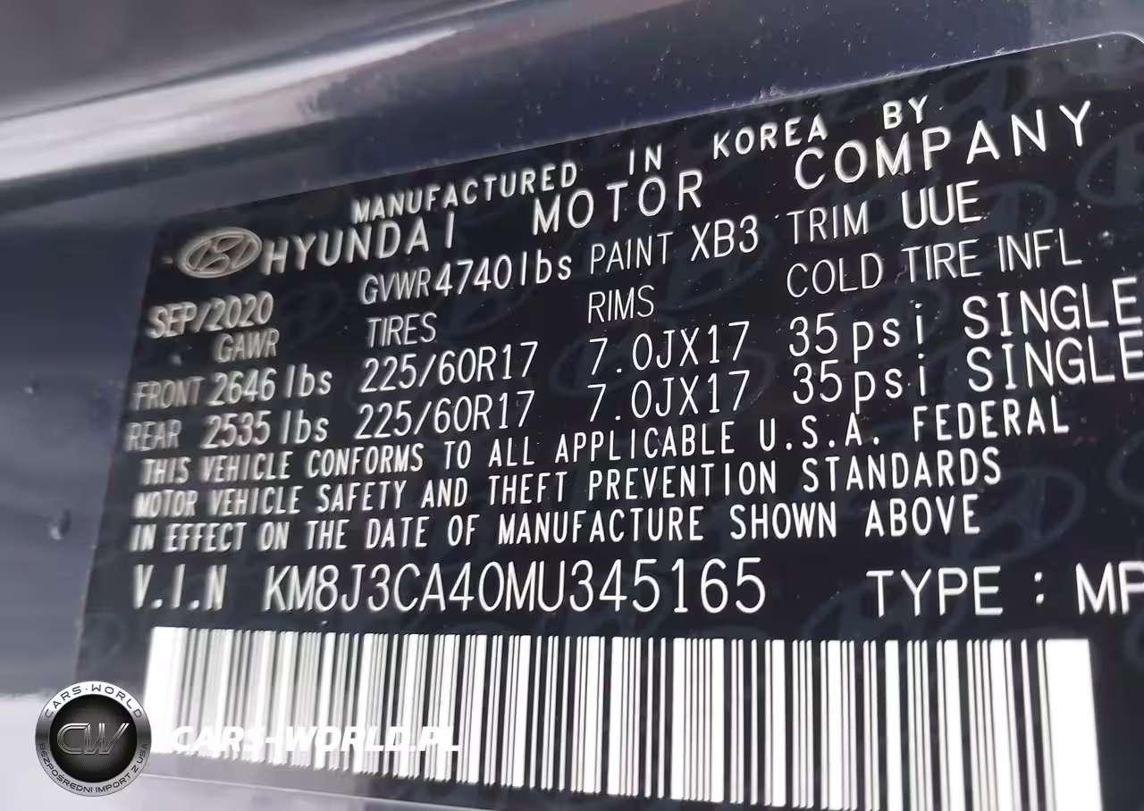 IAAI Nr: I-44377861 VIN: KM8J3CA40MU345165 Port: Elizabeth, NJ