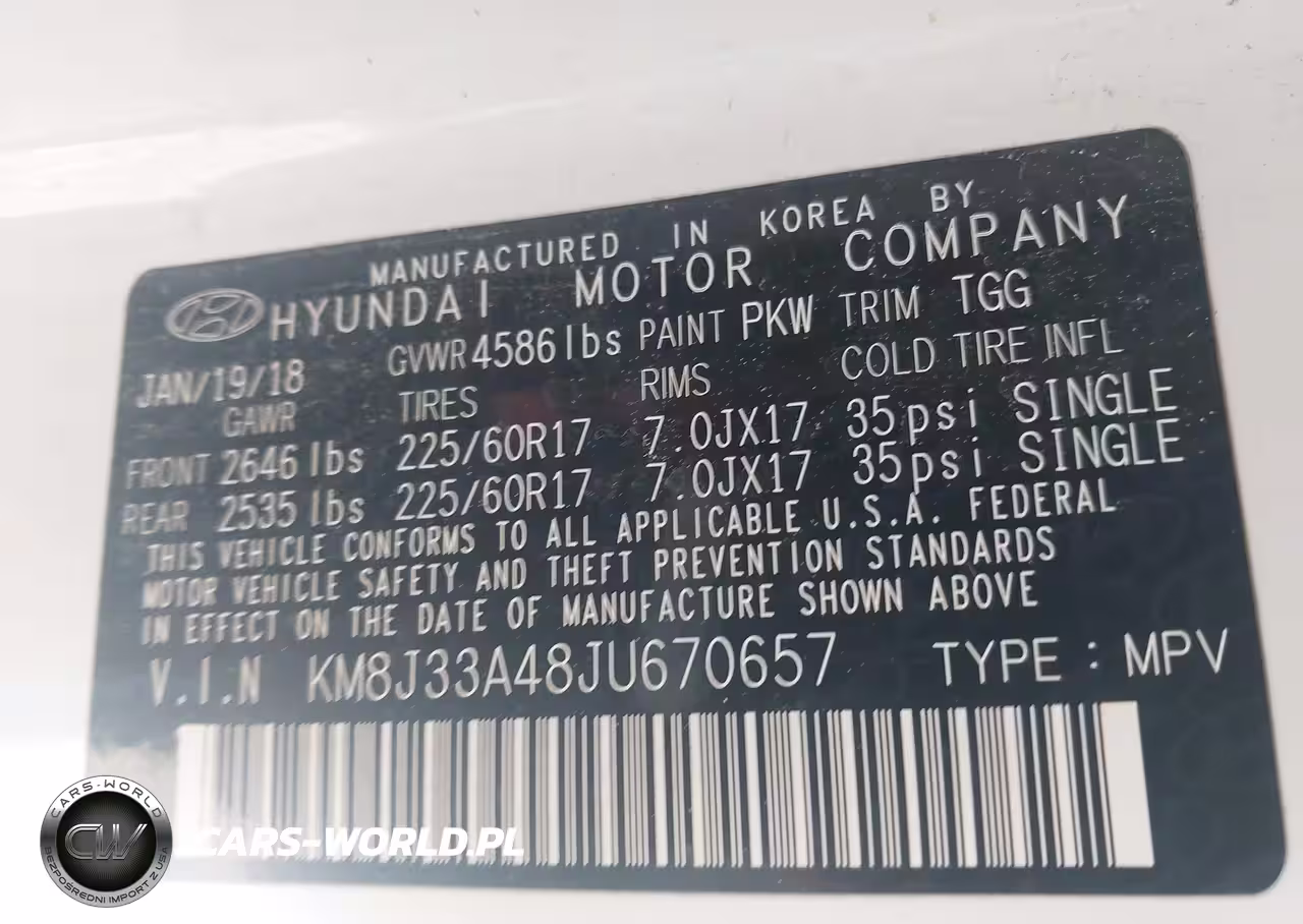IAAI Nr: I-44378556 VIN: KM8J33A48JU670657 Port: Indianapolis, IN