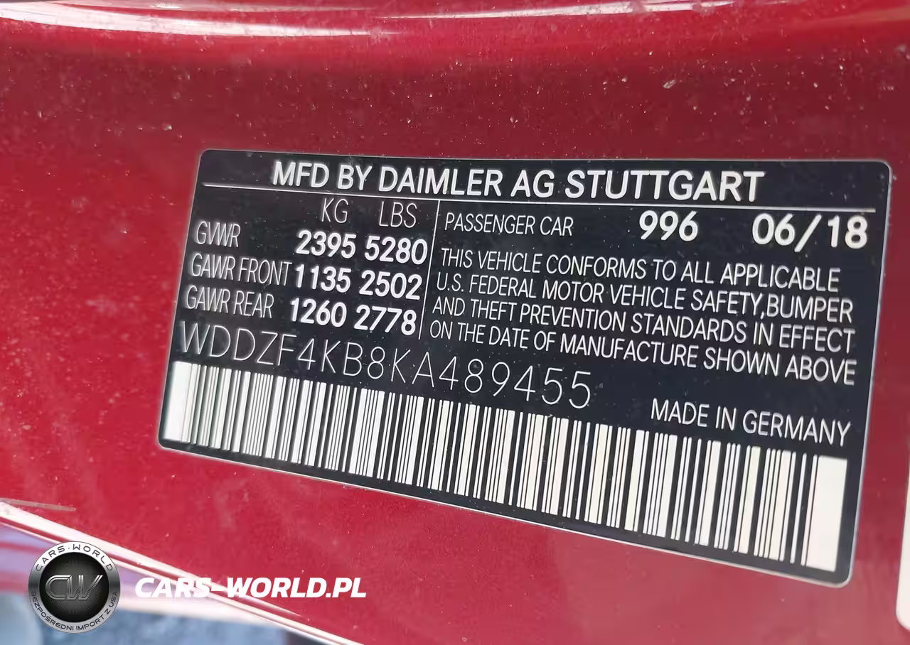 IAAI Nr: I-44379238 VIN: WDDZF4KB8KA489455 Port: Savannah, GA