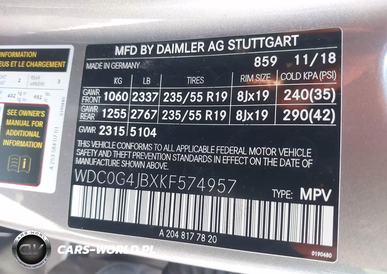 IAAI Nr: I-44379840 VIN: WDC0G4JBXKF574957 Port: Los Angeles, CA