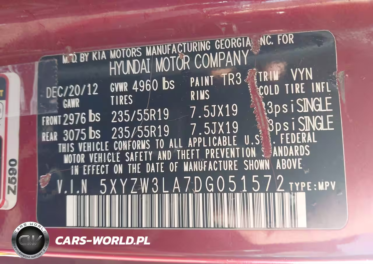 IAAI Nr: I-44380189 VIN: 5XYZW3LA7DG051572 Port: Savannah, GA