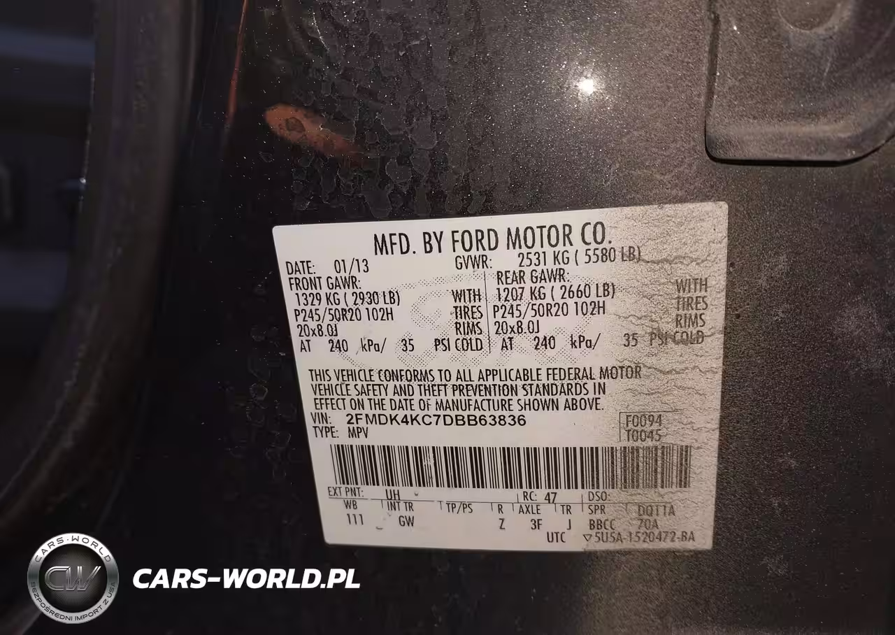 IAAI Nr: I-44381529 VIN: 2FMDK4KC7DBB63836 Port: Indianapolis, IN