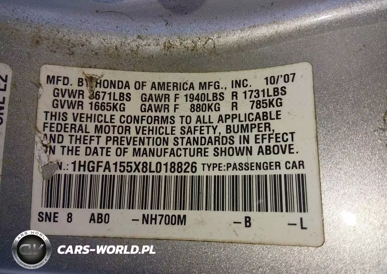 IAAI Nr: I-44381575 VIN: 1HGFA155X8L018826 Port: Houston, TX