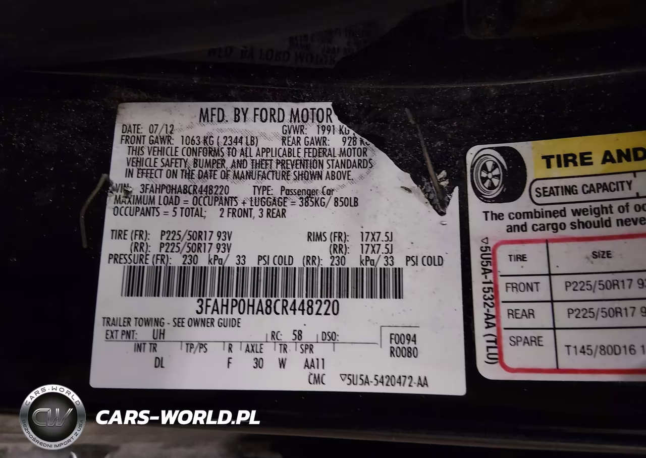 IAAI Nr: I-44382133 VIN: 3FAHP0HA8CR448220 Port: Indianapolis, IN