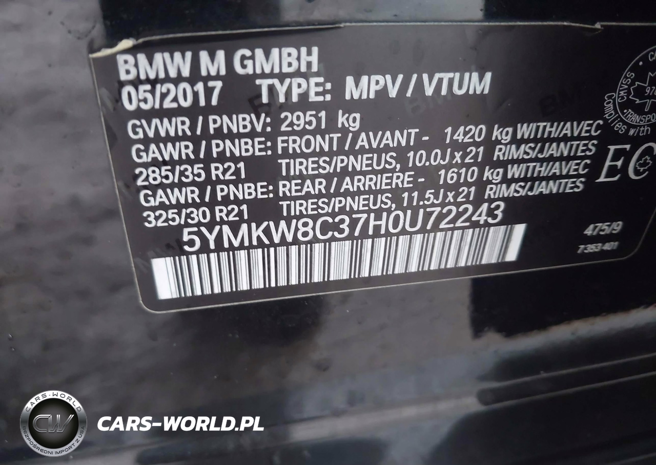 IAAI Nr: I-44382786 VIN: 5YMKW8C37H0U72243 Port: Elizabeth, NJ