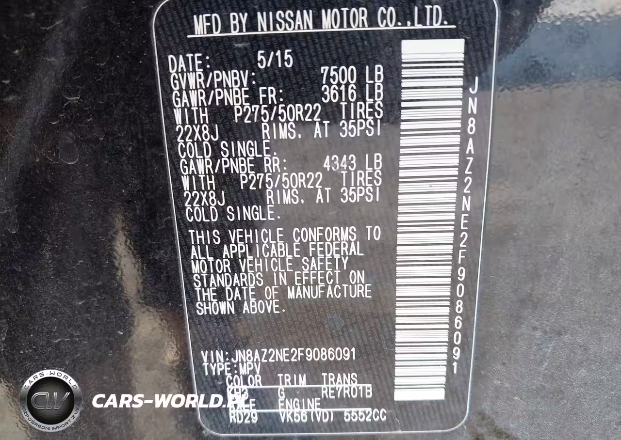 IAAI Nr: I-44382877 VIN: JN8AZ2NE2F9086091 Port: Indianapolis, IN