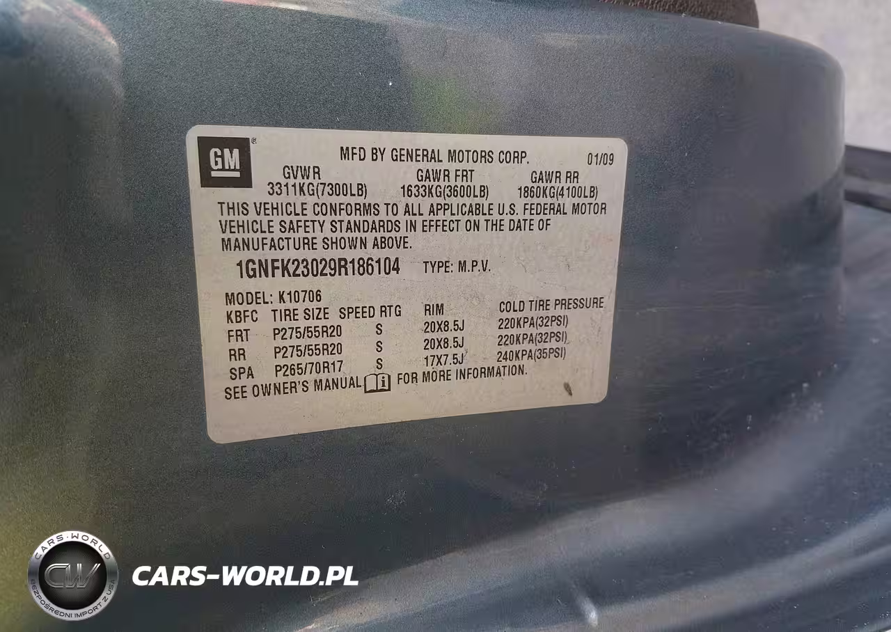IAAI Nr: I-44382911 VIN: 1GNFK23029R186104 Port: Elizabeth, NJ