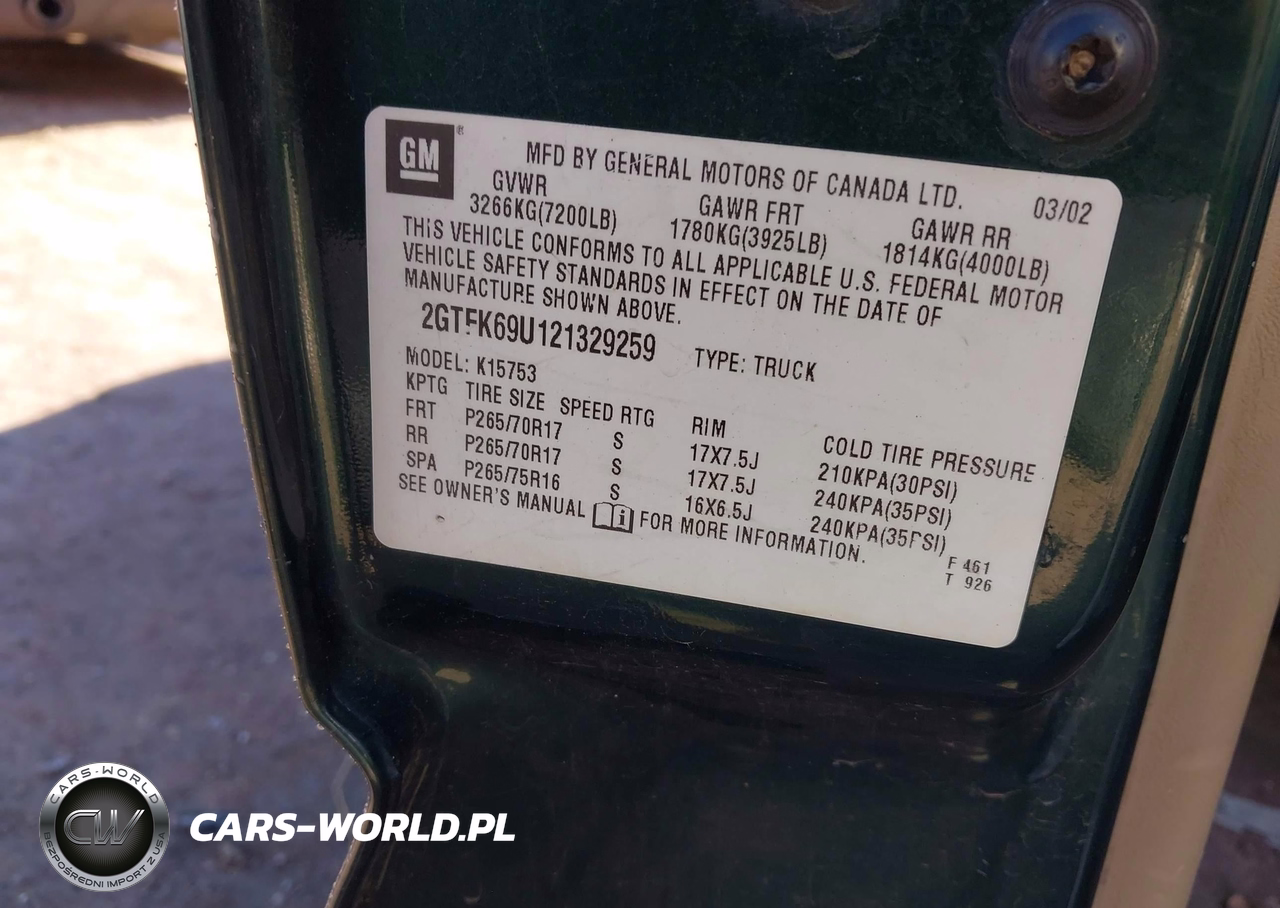 IAAI Nr: I-44384214 VIN: 2GTFK69U121329259 Port: Indianapolis, IN