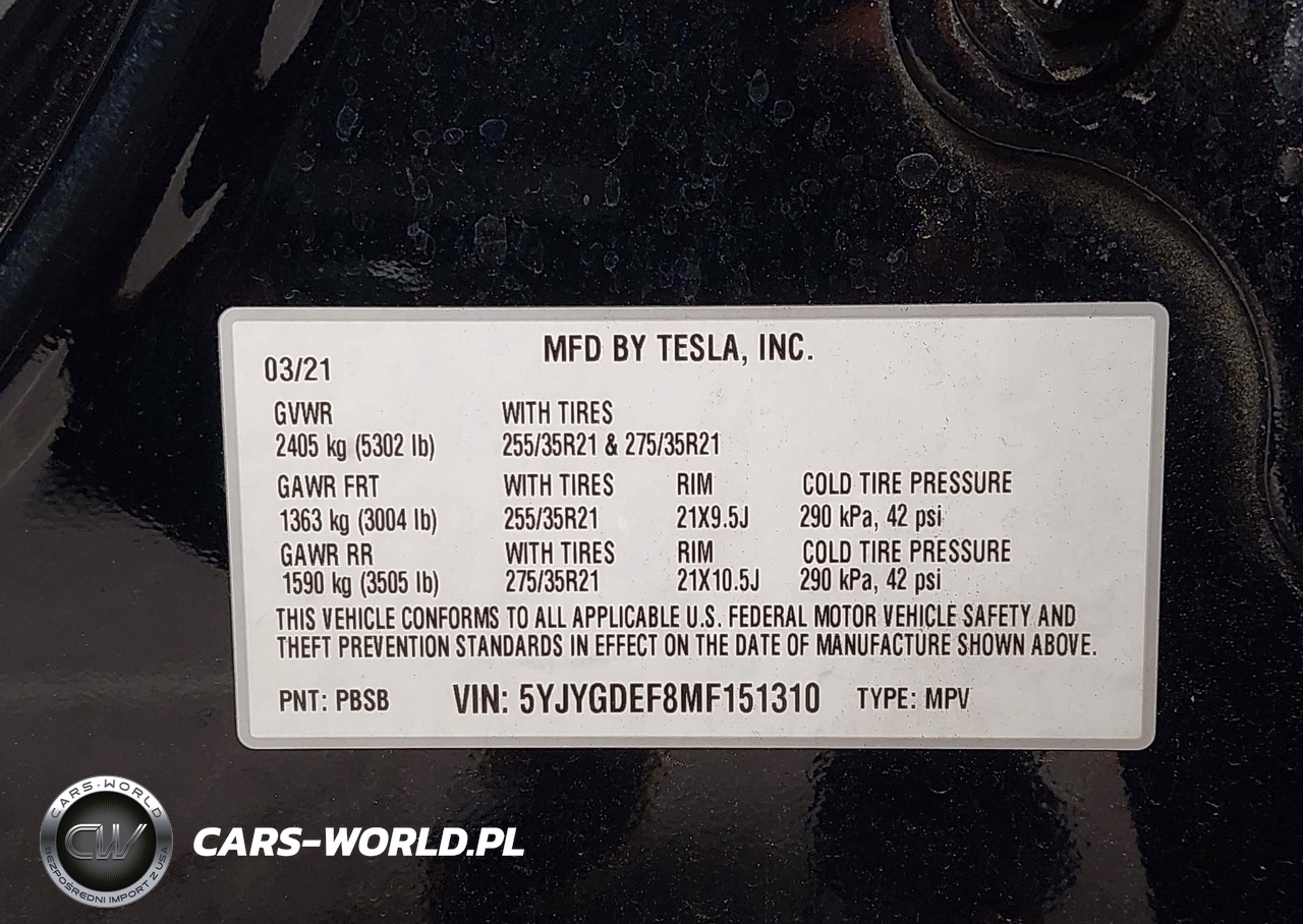 IAAI Nr: I-44385356 VIN: 5YJYGDEF8MF151310 Port: Los Angeles, CA