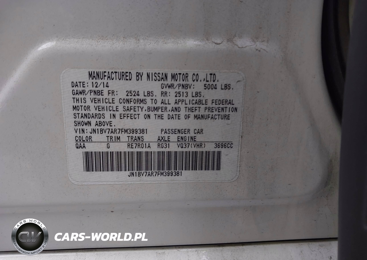 IAAI Nr: I-44385725 VIN: JN1BV7AR7FM399381 Port: Los Angeles, CA