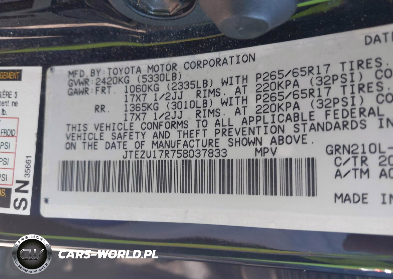 IAAI Nr: I-44387519 VIN: JTEZU17R758037833 Port: Savannah, GA