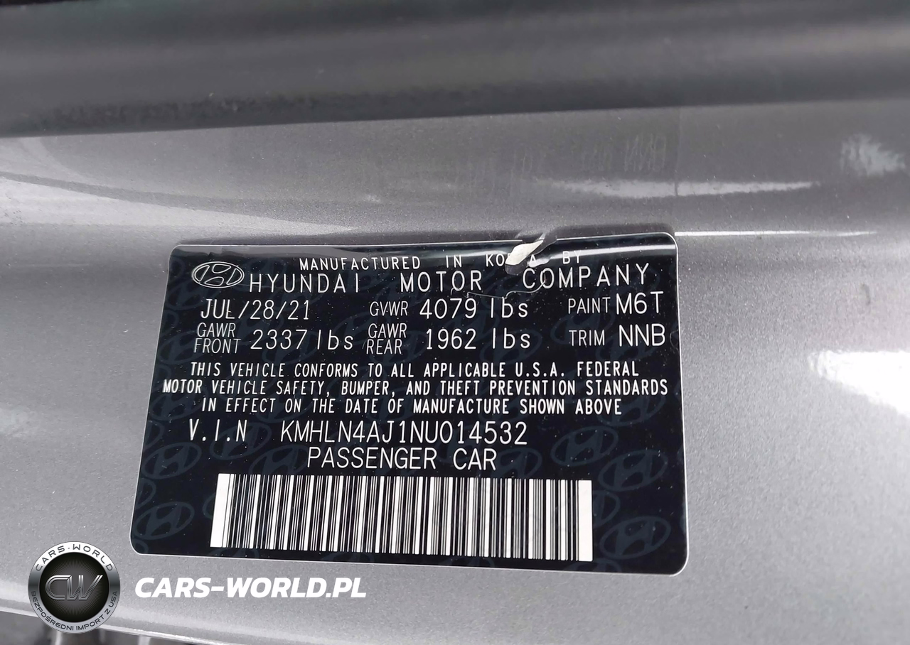 IAAI Nr: I-44389291 VIN: KMHLN4AJ1NU014532 Port: Elizabeth, NJ