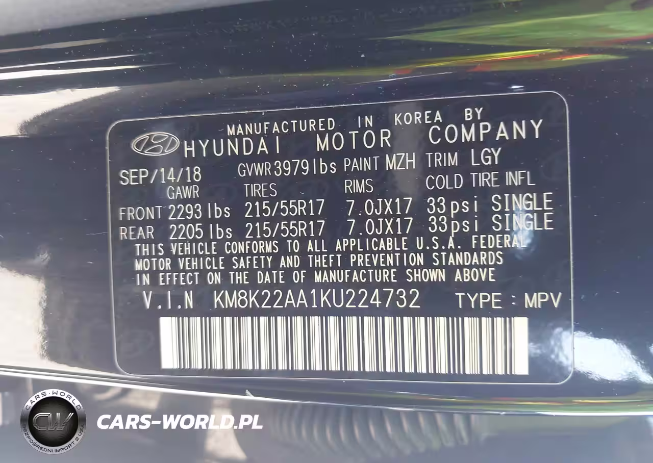 IAAI Nr: I-44389671 VIN: KM8K22AA1KU224732 Port: Houston, TX