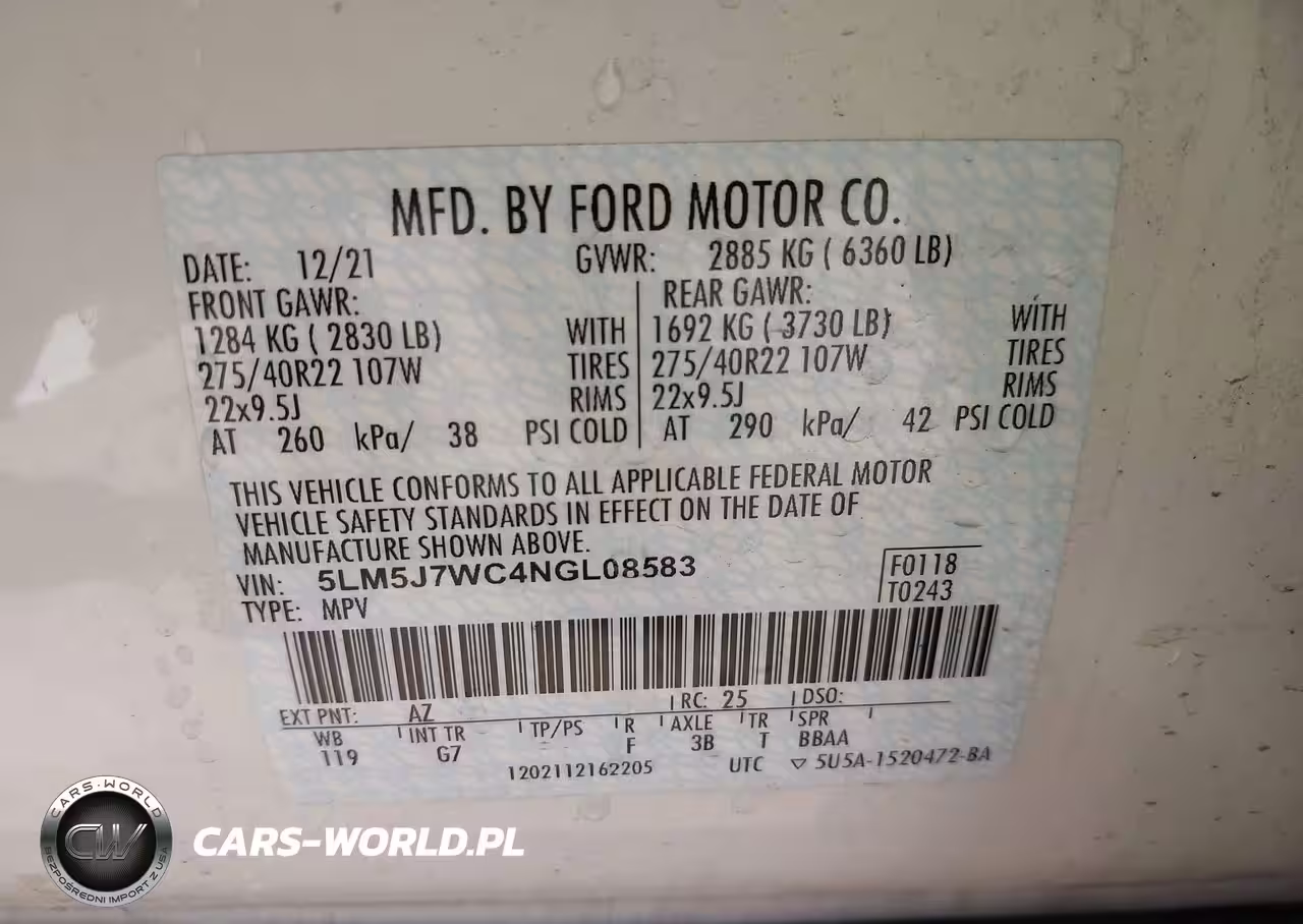 IAAI Nr: I-44392058 VIN: 5LM5J7WC4NGL08583 Port: Houston, TX