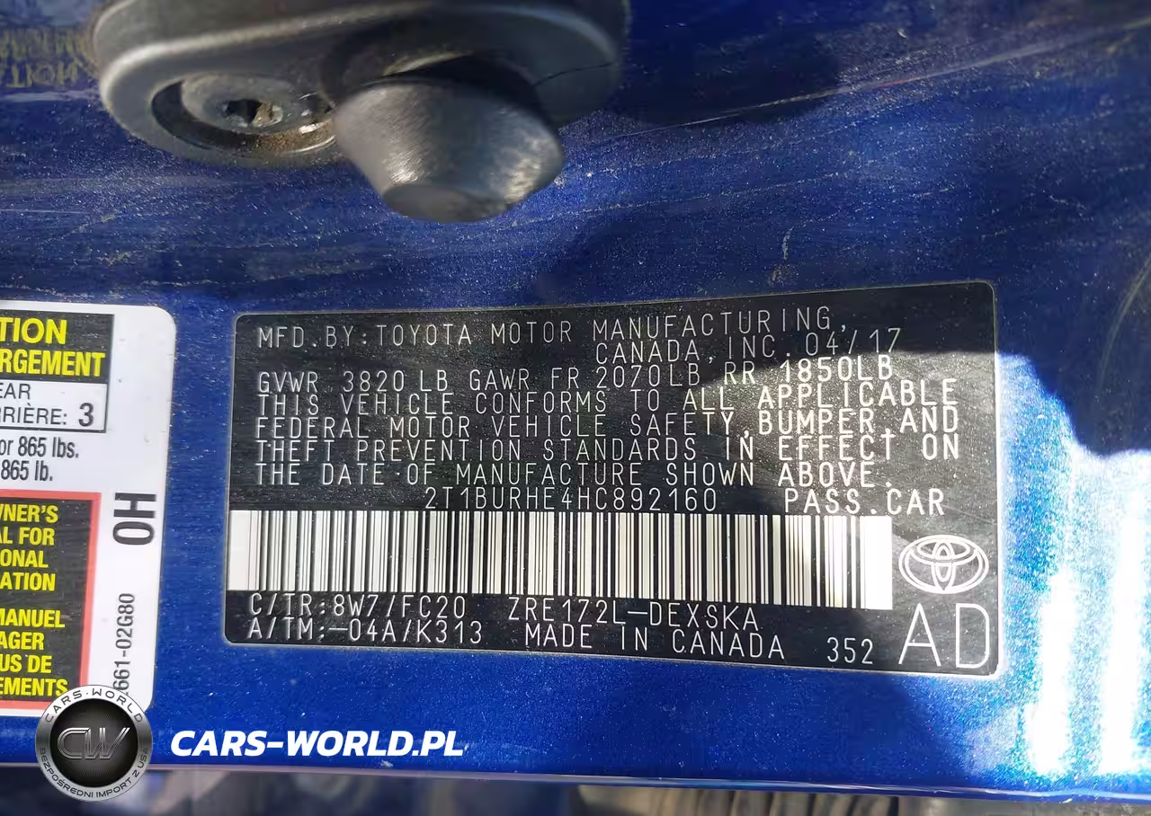 IAAI Nr: I-44392637 VIN: 2T1BURHE4HC892160 Port: Los Angeles, CA