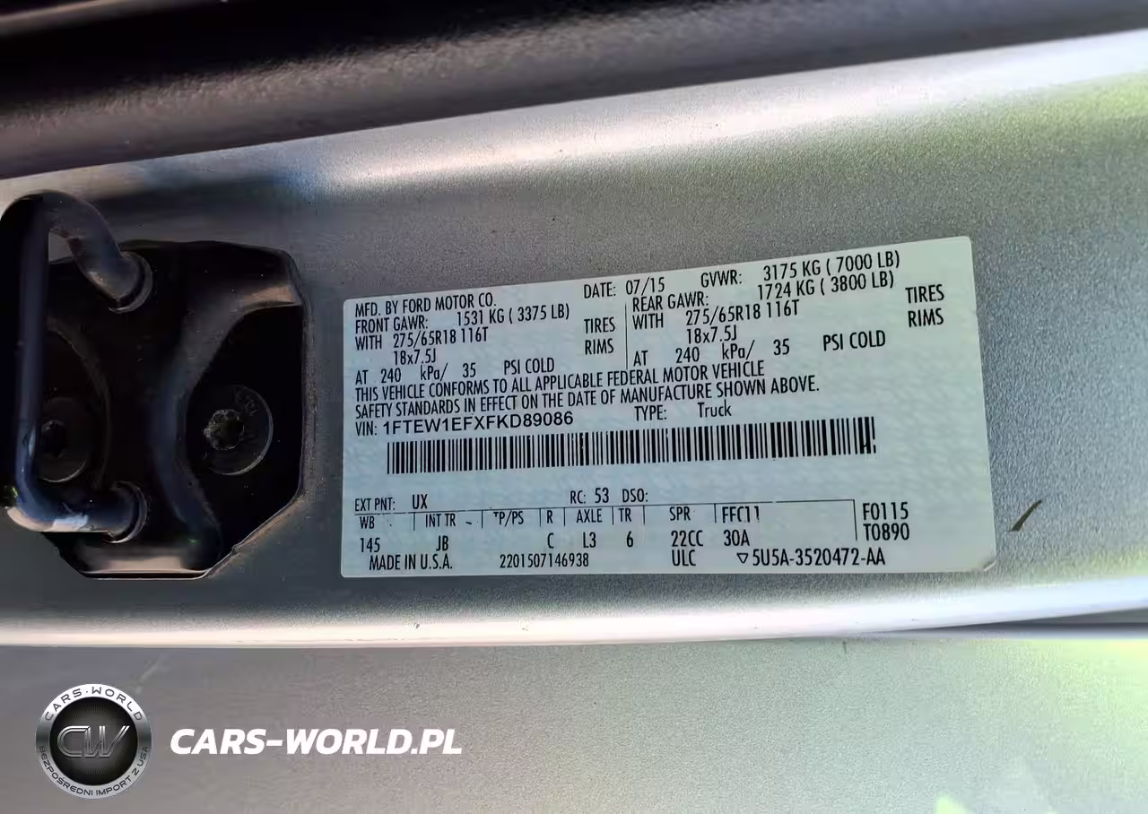 IAAI Nr: I-44393232 VIN: 1FTEW1EFXFKD89086 Port: Savannah, GA
