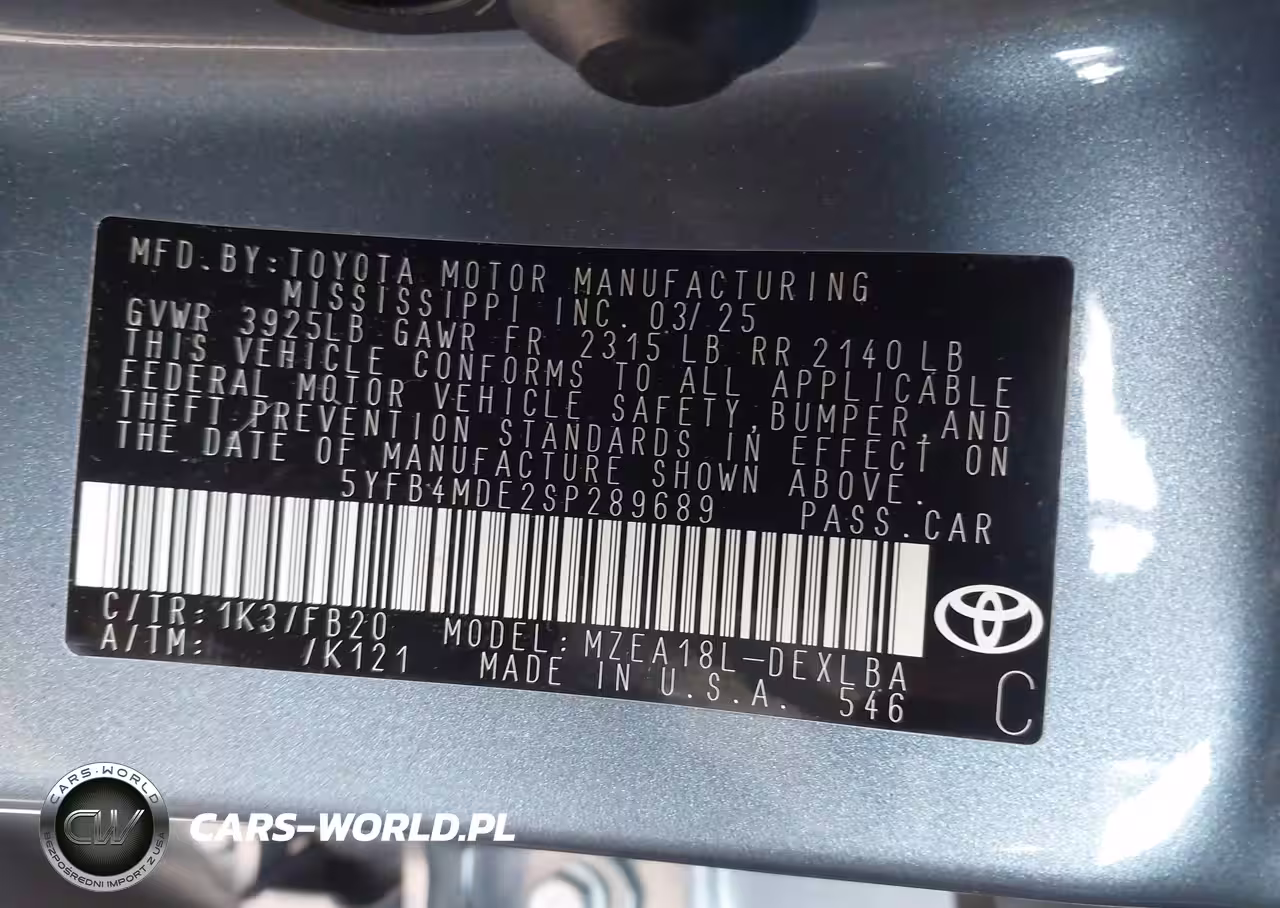 IAAI Nr: I-44393478 VIN: 5YFB4MDE2SP289689 Port: Elizabeth, NJ