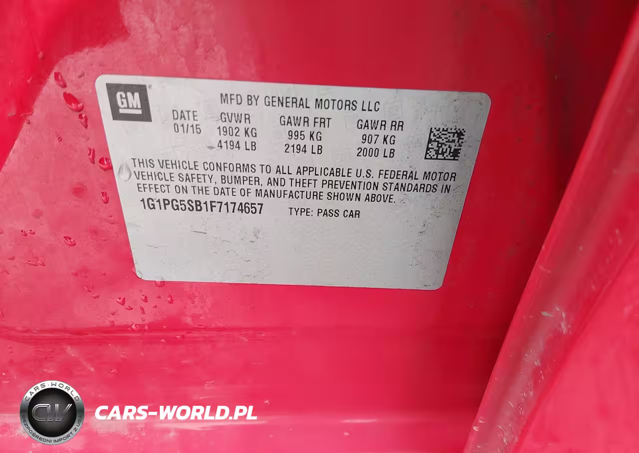 IAAI Nr: I-44393647 VIN: 1G1PG5SB1F7174657 Port: Indianapolis, IN