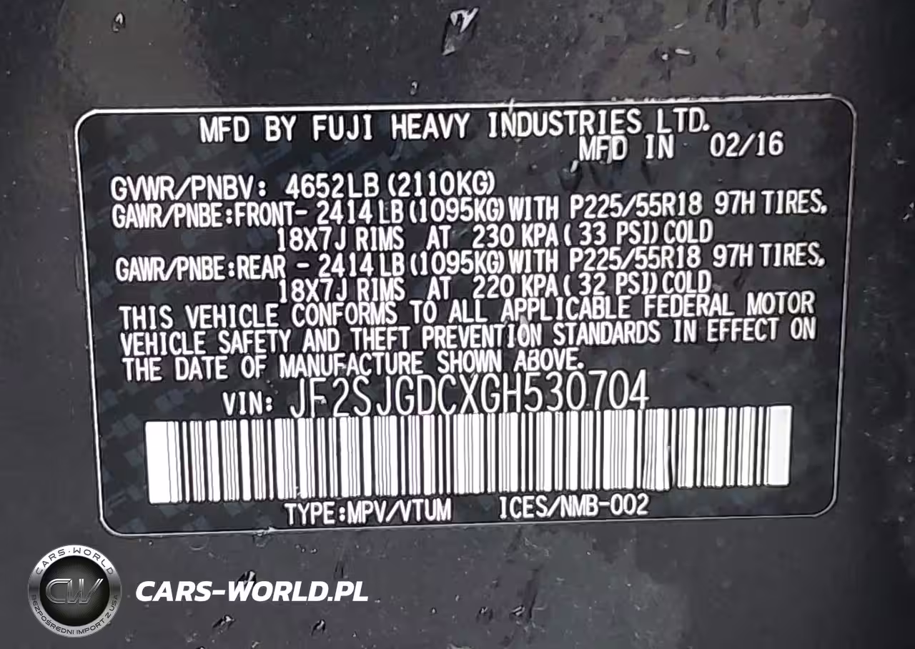 IAAI Nr: I-44393870 VIN: JF2SJGDCXGH530704 Port: Los Angeles, CA