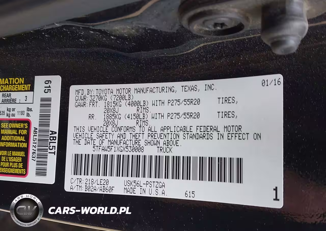 IAAI Nr: I-44394751 VIN: 5TFAW5F1XGX530008 Port: Houston, TX