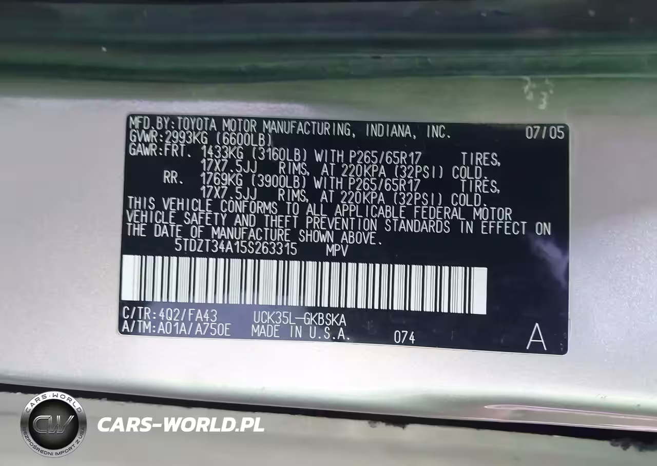 IAAI Nr: I-44395322 VIN: 5TDZT34A15S263315 Port: Los Angeles, CA
