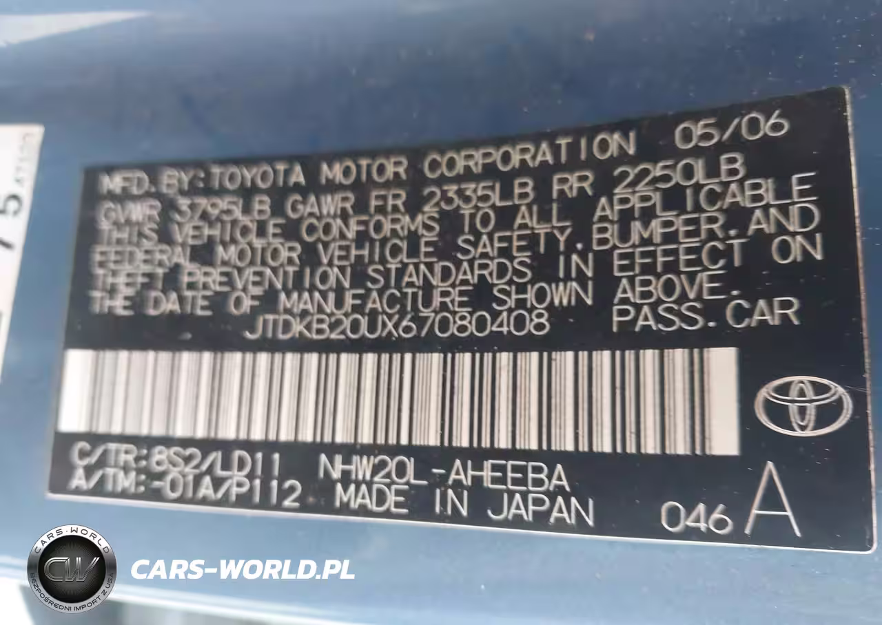 IAAI Nr: I-44395480 VIN: JTDKB20UX67080408 Port: Houston, TX