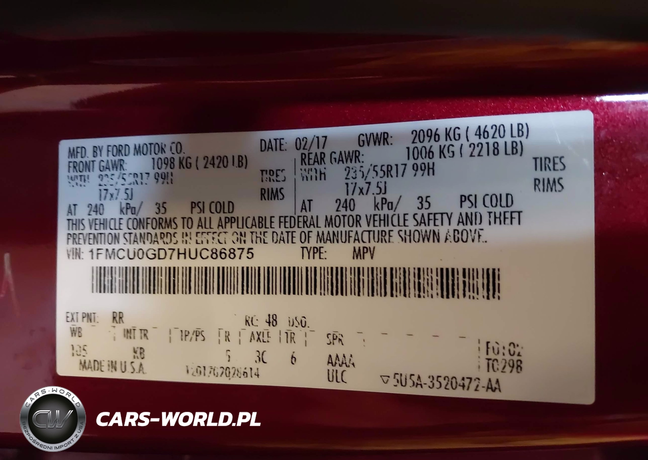 IAAI Nr: I-44396468 VIN: 1FMCU0GD7HUC86875 Port: Indianapolis, IN