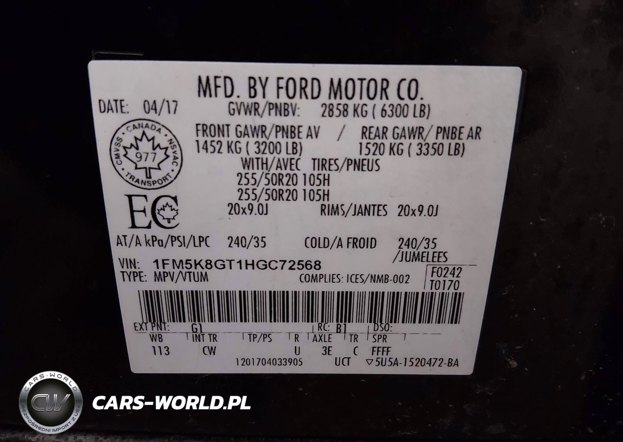IAAI Nr: I-44397010 VIN: 1FM5K8GT1HGC72568 Port: Indianapolis, IN
