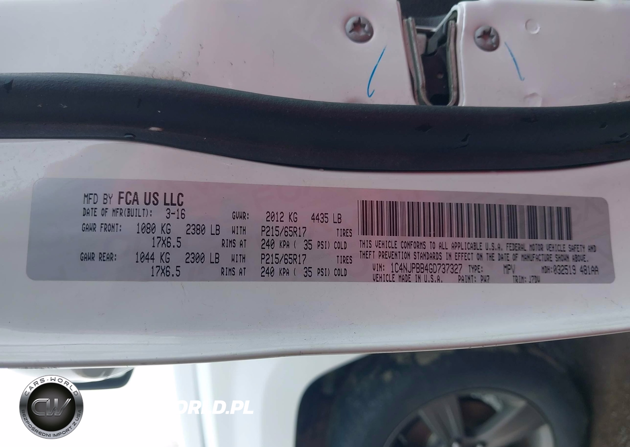 IAAI Nr: I-44397400 VIN: 1C4NJPBB4GD737327 Port: Indianapolis, IN