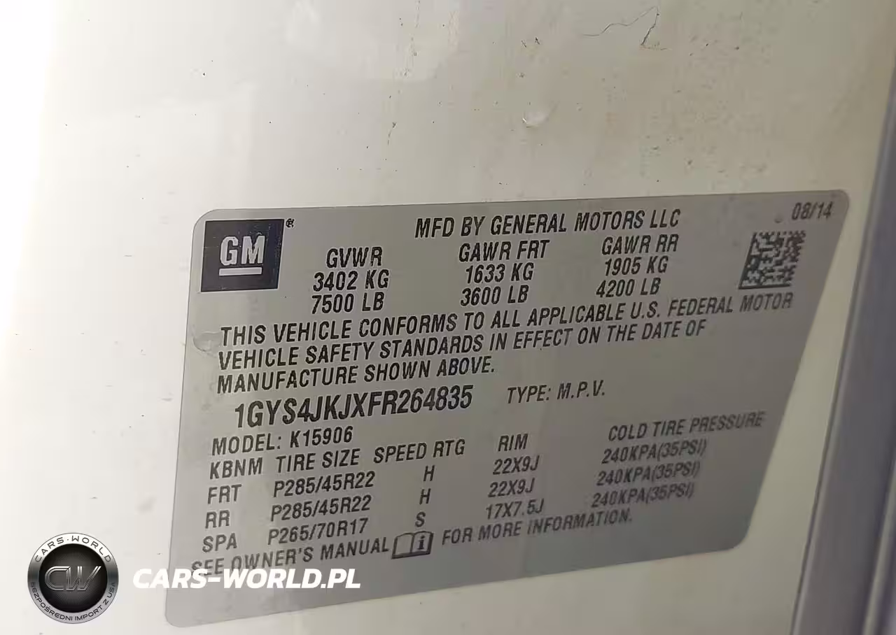 IAAI Nr: I-44398169 VIN: 1GYS4JKJXFR264835 Port: Houston, TX