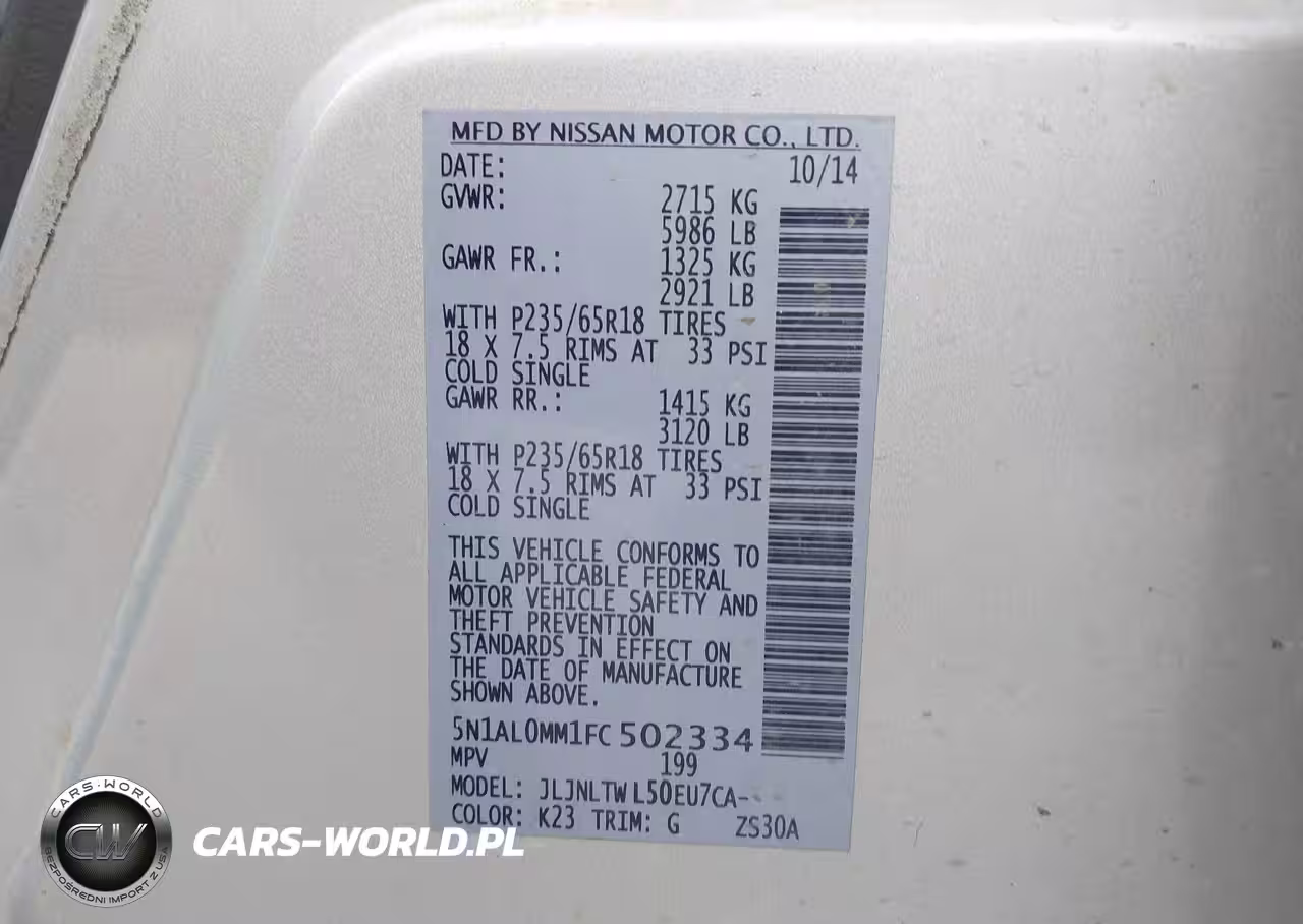 IAAI Nr: I-44398358 VIN: 5N1AL0MM1FC502334 Port: Houston, TX