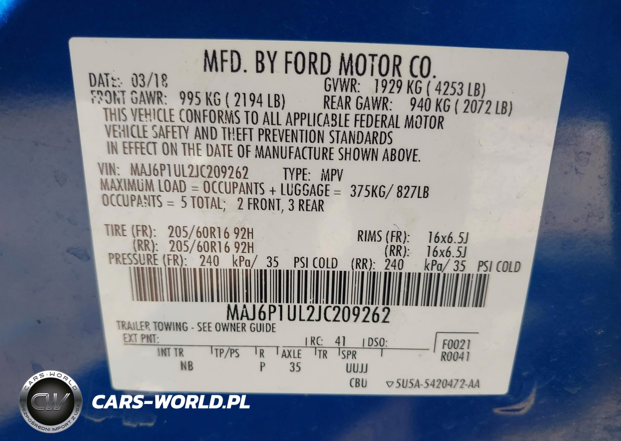 IAAI Nr: I-44399230 VIN: MAJ6P1UL2JC209262 Port: Houston, TX