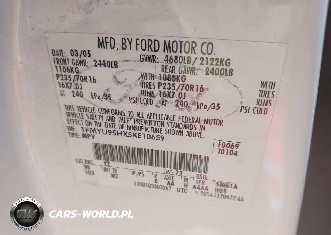 IAAI Nr: I-44399986 VIN: 1FMYU95HX5KE10659 Port: Los Angeles, CA