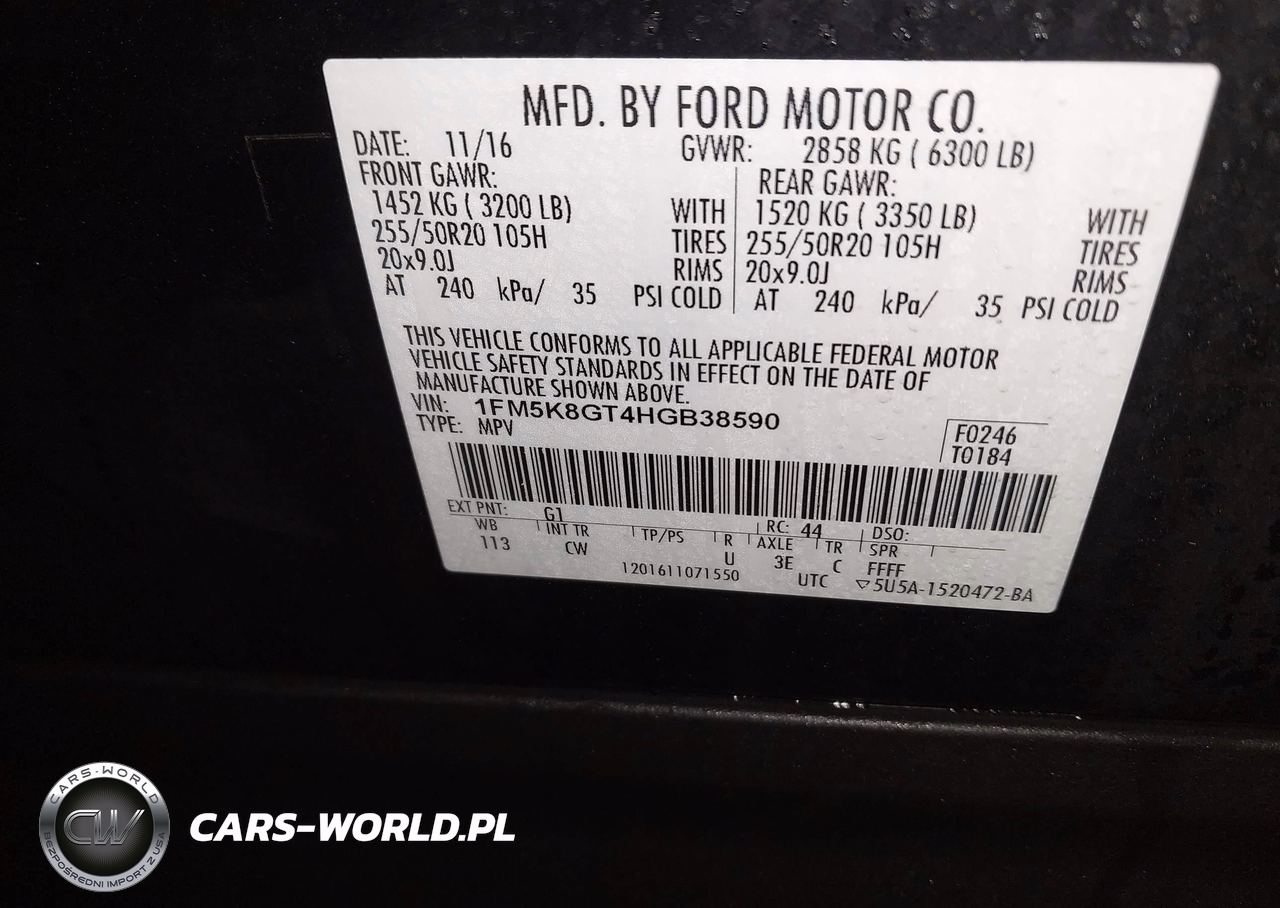 IAAI Nr: I-44400626 VIN: 1FM5K8GT4HGB38590 Port: Elizabeth, NJ