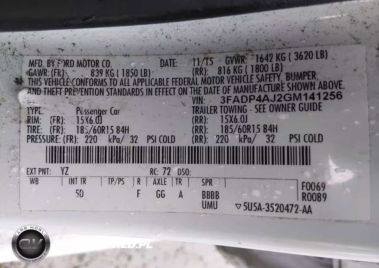 IAAI Nr: I-44400710 VIN: 3FADP4AJ2GM141256 Port: Los Angeles, CA