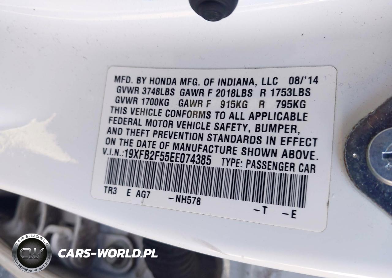 IAAI Nr: I-44401614 VIN: 19XFB2F55EE074385 Port: Savannah, GA