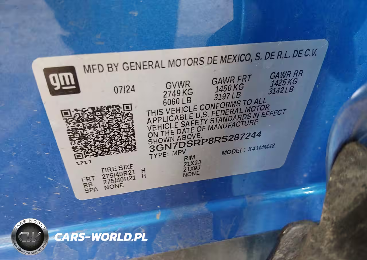 IAAI Nr: I-44402022 VIN: 3GN7DSRP8RS287244 Port: Indianapolis, IN
