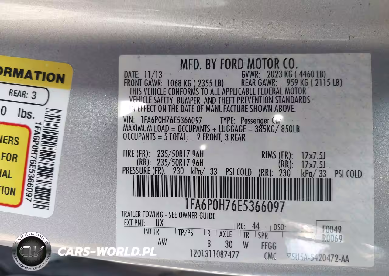 IAAI Nr: I-44403797 VIN: 1FA6P0H76E5366097 Port: Indianapolis, IN