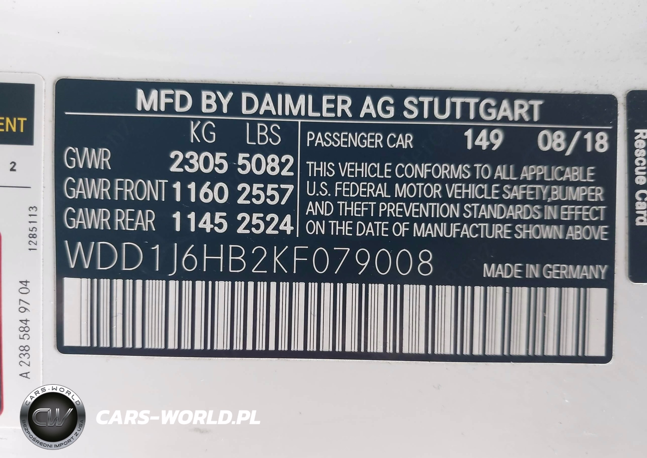 IAAI Nr: I-44404122 VIN: WDD1J6HB2KF079008 Port: Elizabeth, NJ