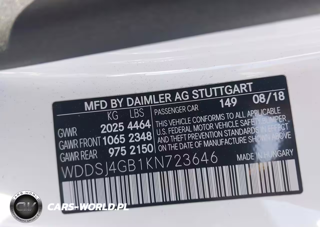 IAAI Nr: I-44404489 VIN: WDDSJ4GB1KN723646 Port: Elizabeth, NJ