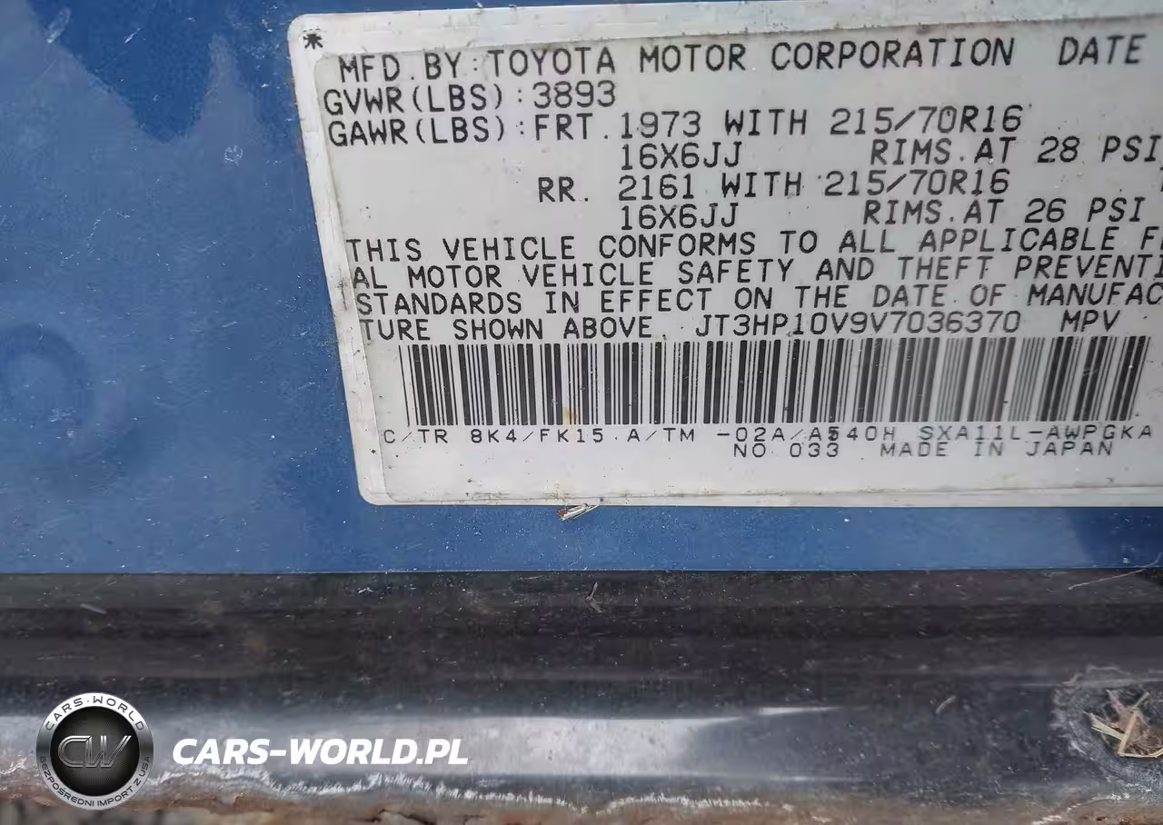 IAAI Nr: I-44407688 VIN: JT3HP10V9V7036370 Port: Elizabeth, NJ