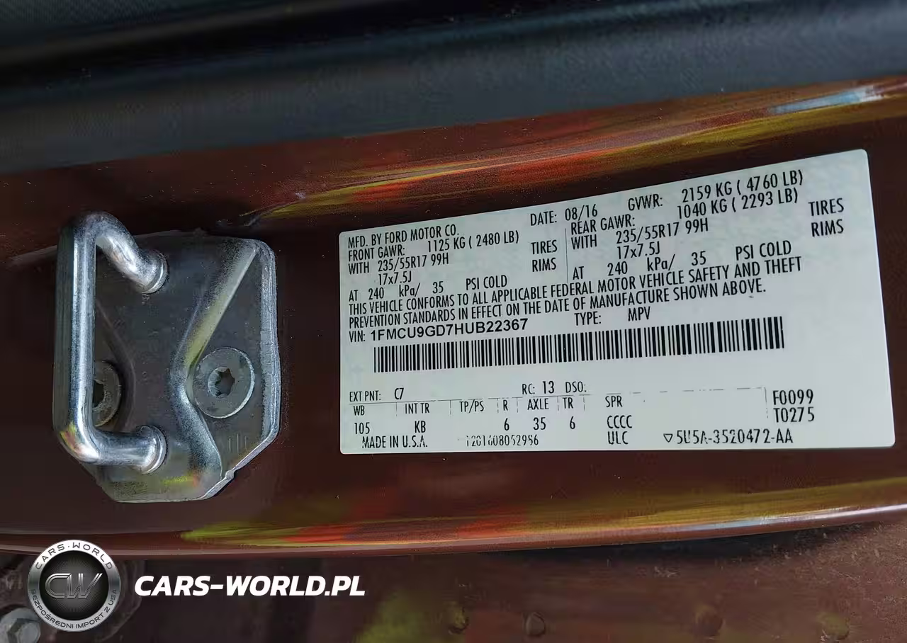 IAAI Nr: I-44408072 VIN: 1FMCU9GD7HUB22367 Port: Elizabeth, NJ