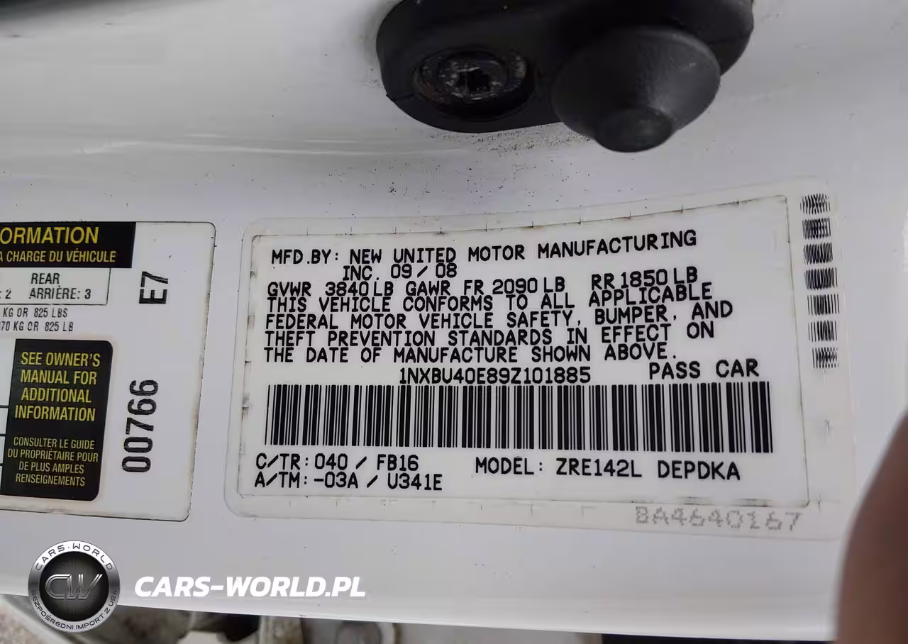 IAAI Nr: I-44408351 VIN: 1NXBU40E89Z101885 Port: Savannah, GA