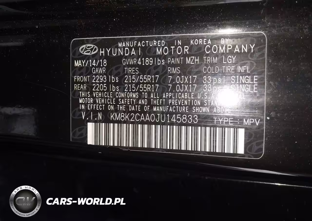 IAAI Nr: I-44408427 VIN: KM8K2CAA0JU145833 Port: Elizabeth, NJ