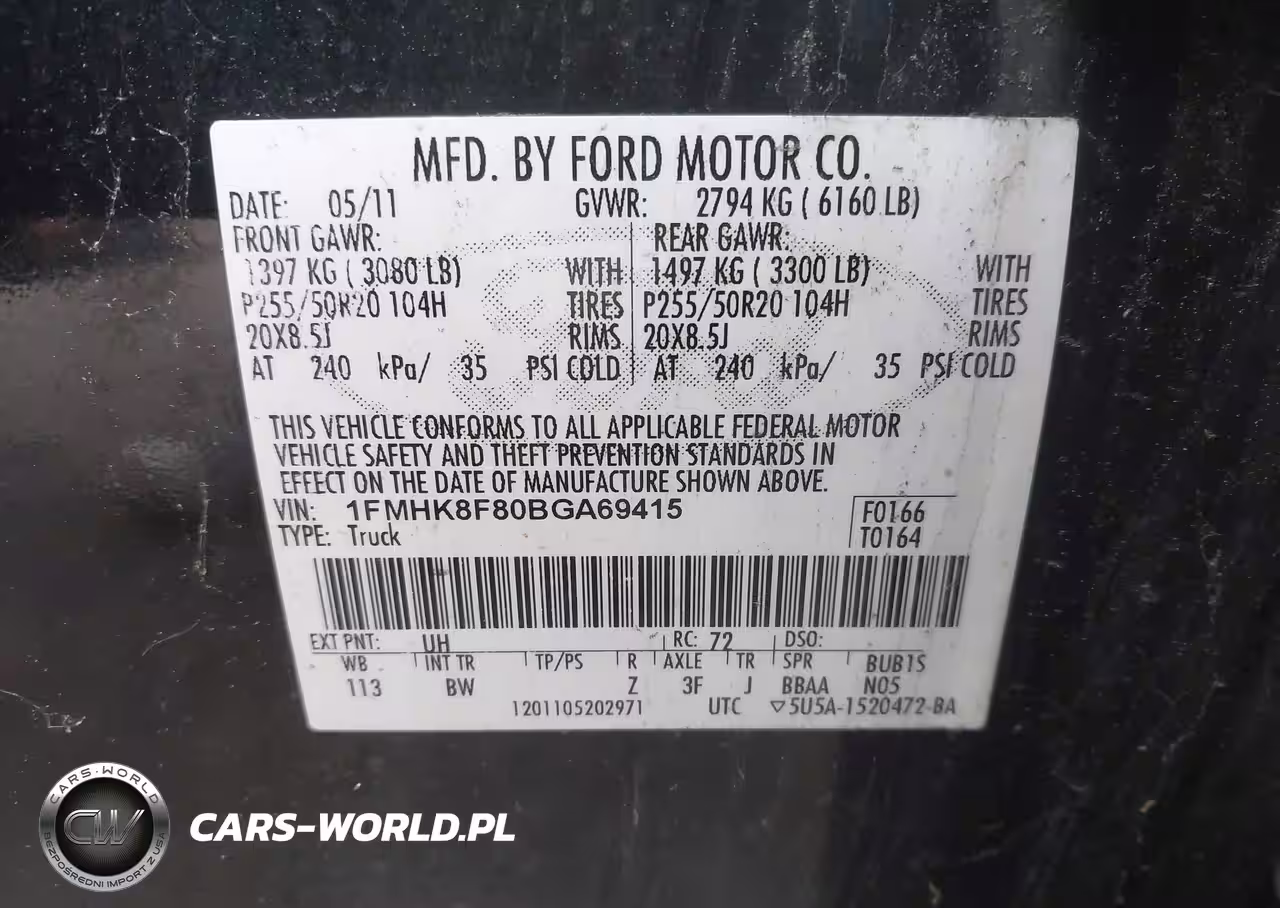 IAAI Nr: I-44409828 VIN: 1FMHK8F80BGA69415 Port: Elizabeth, NJ