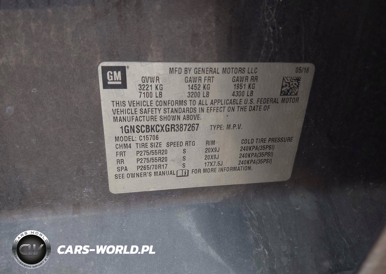 IAAI Nr: I-44411465 VIN: 1GNSCBKCXGR387267 Port: Houston, TX